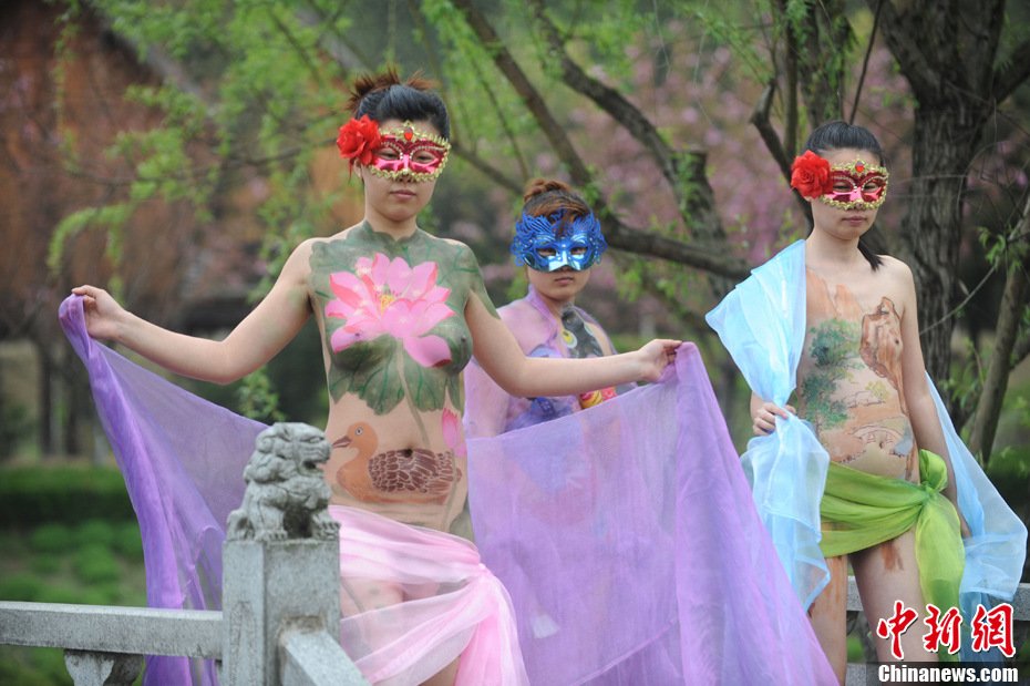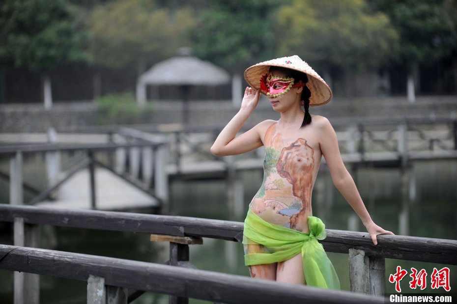 2011年4月13日,在安徽省宁国市恩龙旅游景区,人体彩绘模特的表演吸引了大批游客观看。当日,安徽省宁国市恩龙世界木屋村景区结合自然风光,进行人体彩绘展示活动,让游客欣赏到自然美景的同时,体味了一番别样的时尚艺术。据悉,景区已将艺术人体彩绘展示活动与恩龙民俗风情园里的少数民族风情表演巧妙地融合在一起。
